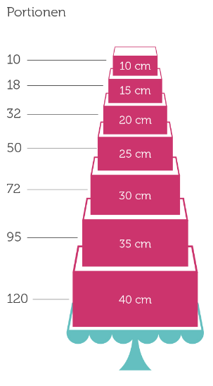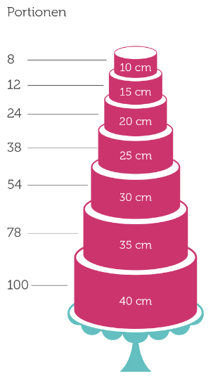 einer Tortenhöhe von 8-10 cm, rechnet man mit folgenden